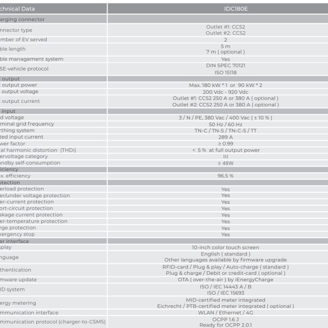 IDC180E Γρήγορος Φορτιστής για Ηλεκτρικά Αυτοκίνητα